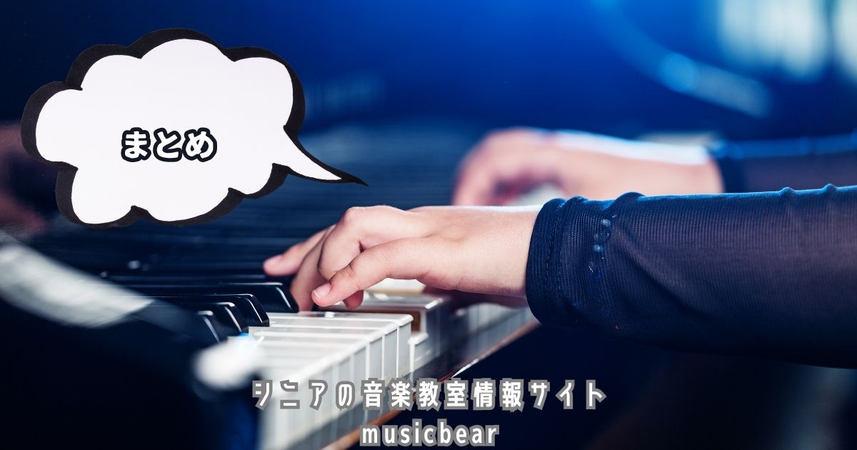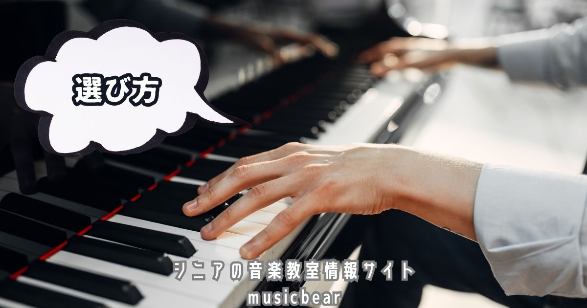 - シニア向けピアノ教室選びは「シニア向けコース」「講師との相性」「通いやすさ」がポイント